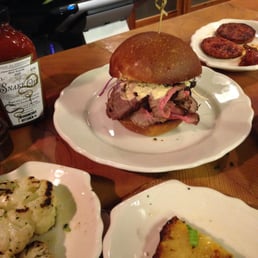 Good food, great meat...I'm hungry...let's eat! Yep home made sausages, high quality meats and cheeses that you'll pay a fine price for. Atmosphere is terrific....even a fire pit outside in the middle of the big nm Dining is a pleasure with terrific service and intimate booths. Great beer selection. Try the pork chop sandwich and ham and cheese. Great chicken liver spread too. The down side is that lunch for two with a drink and appetizer hits the $60 mark.